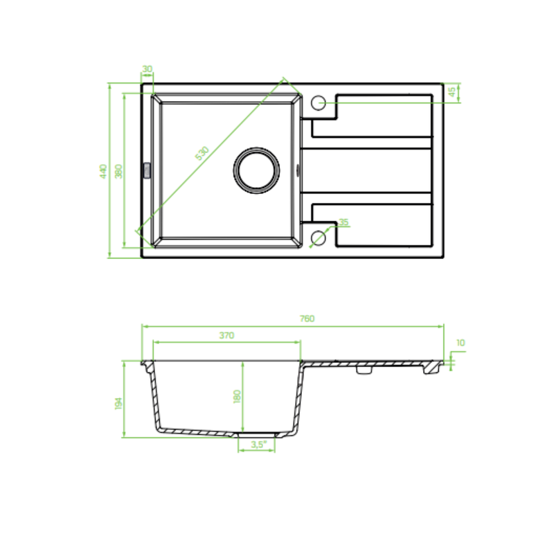 Chiuveta de granit este compusa din 80% amestec de granit si 20% rasina acrilica.