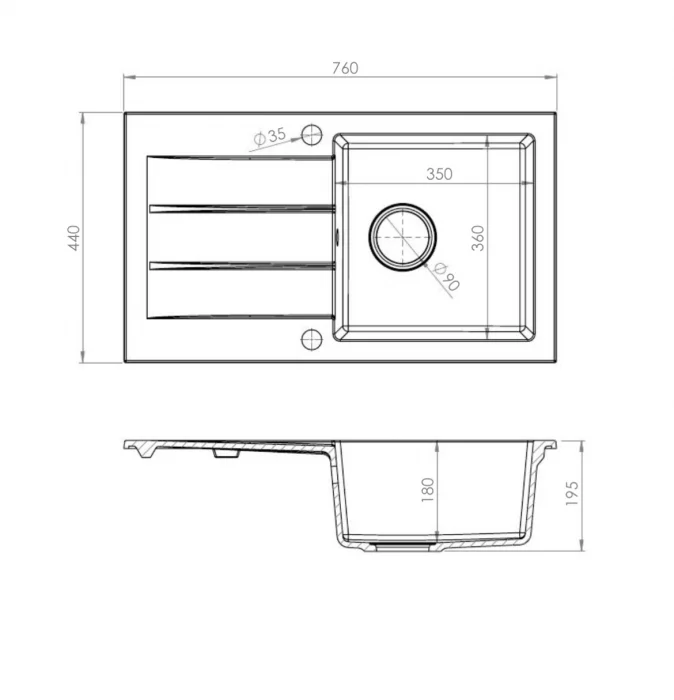 CHIUVETA BUCATARIE DEAL 1C 1P BLACK 760*440*19 MM