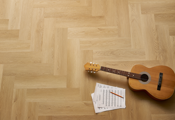 Legnar Herringbone Afirmax este disponibilă în mai multe decoruri de stejar natural, de la tonuri deschise nordice până la nuanțe mai intense și elegante.